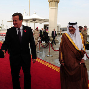 (Left) David Cameron walks with Prince Khalid bin Faisal bin Abdulaziz, (right) Tom Brake MP.