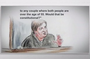 The Supreme Court does release some sound-clips, but they're played over drawings, like this: