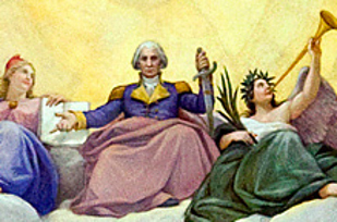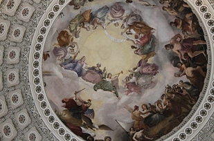 6. In the painting on the inside of the dome of the Capitol, Washington sits in the heavens as a deity.