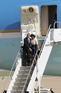 The Obamas arrived in Austin today.