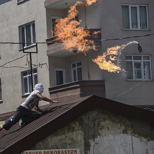 Sickles and hammers scrawled angrily on brick walls greet visitors to Istanbul’s Sultangazi neighborhood, a stronghold of the PKK on the outskirts of Turkey’s commercial capital. Residents here toss around phrases like “American imperialism” despite the budding de facto alliance with Washington south of the border. Unlike other districts outside the posh Europeanized enclaves of Istanbul, few women wear headscarves. The sole Islamic school, built two years ago by the Islamist-rooted government loyal to President Recep Tayyip Erdogan, comes under repeated attacks by stone-wielding rioters during frequent, raucous protests that have erupted since the outbreak of war in July.