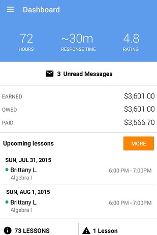 But the company wants to keep growing — which is why it brought on Fishman, who is working on ways to overcome the limits of geography, for example, expanding the company's online learning product — which offers students and tutors interactive video conferencing — as well as pursuing international markets. And it's slowly starting to experiment with mobile apps: 15,000 tutors have downloaded a WyzAnt app that allows them to scroll for new jobs, book gigs, and otherwise manage their businesses. Next up, although not yet released, is an app for students (or, as the more likely case may be, their parents).