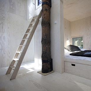 The Mirrorcube treehouse appears almost entirely invisible among a canopy of trees in Harads, Sweden. This mirrored box contains a 90-square-foot room designed to be suspended at a height of 40 feet.