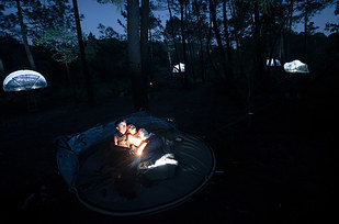 Dihan Évasion is situated on a family farm and offers a variety of unusual sleep accommodations among the trees. Perhaps the most unique is the transparent bubble tents, which are suspended several yards above the ground and offer panoramic views of the natural surroundings.