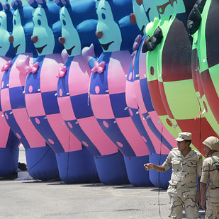 4. Four words: Scary. Freaking. Teddy Bears. These horrors were put on display in Tahrir Square before today's ceremony and later taken down because, again, scary.