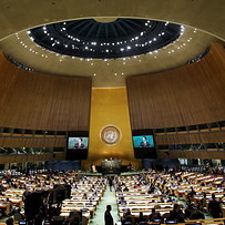 The UN first recommended the partition of the then-UK-controlled territory of Palestine into two territories, one Arab and one Jewish, in 1947. The UN's plan was never put into place, though, as war broke out between the newly declared State of Israel and its Arab neighbors. Israel finally joined up in 1949 and since then, the relationship could easily be described as spotty. Israel was at the center of the Suez Canal crisis in 1955 that spawned the first UN peacekeeping mission; the capture of the West Bank and Gaza Strip during the Six-Day War in 1967 prompted the passage of UN Security Council Resolution 242, the guideline for all negotiations between the Israelis and Palestinians since then.