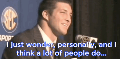 Virgin-shaming often occurs with public figures who are open about their religious beliefs. At a 2009 SEC press conference, then-21-year-old University of Florida quarterback Tim Tebow was asked if he was "saving himself for marriage." The room nervously laughed before Tebow answered that he was. It's a question other athletes are not asked.