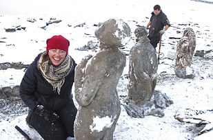 Davies told the Associated Press that participants are reinstalling 69 of the 85 sculptures ahead of the official opening, which is still on. Most of the snow-dusted sculptures were toppled by winds.