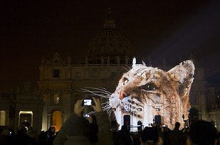 Accompanying the pomp and circumstance was a gift to Francis in honor of his Holy Year of Mercy: A photo light show organized by humanitarian organizations.