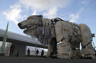 Global climate conferences always draw mass demonstrations, but in Paris — where leaders from more than 190 nations are trying to craft the first worldwide climate accord — activists have upped their visual game. Stormtroopers, a two-story mechanical polar bear, a mini-replica of the Eiffel Tower, and a group of angels have all made an appearance so far.