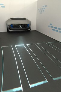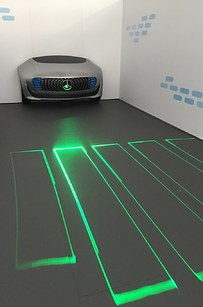 Using an array of ultrasonic sensors and cameras, the F015 navigates freeways, steering clear of other traffic. When a pedestrian suddenly steps in front of it, the car projects a laser walkway and offers a diplomatic audio message: "Please go ahead."