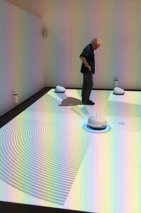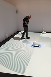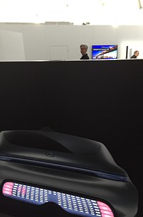 Alexander Mankowsky, Mercedes head of Futures Studies and Ideation, demonstrating how the F015 uses its radars to detect people and things surrounding it.
