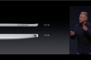 Apple SVP Phil Schiller filled in the details: A huge screen, 12.9 inches, with 5.6 million pixels (that's more than a 15-inch retina MacBook Pro), that accommodates a full-size software keyboard; and a faster processor, running on an A9X 64-bit chip with doubled memory and storage performance.