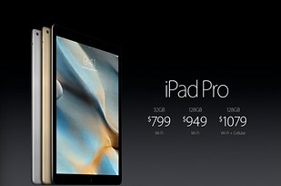 The new iPad Pro debuted, featuring a full-size software keypad, Apple's largest iPad screen and strongest processing power yet, and a new $99 "Apple Pencil" stylus. Aimed at professionals, Apple teamed with Microsoft and Adobe on iPad-only productivity and creative apps. They cost $799, $949, $1079 based on hard drive size. A new external keyboard costs $169. It's all available in November.