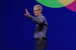 Cook highlighted the company's partnerships with Cisco and IBM before playing a video of the device hurtling through space, a veritable planetoid of screen.