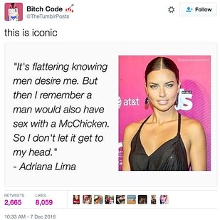 ANYWAY, in late November, this quote — which was supposedly said by Victorias's Secret model Adriana Lima — began circulating.