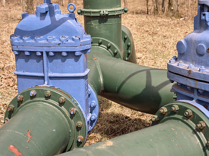 Pipes inside the Dubois Water Treatment Plant, left, and pipes related to drilling operations in Moshannon State Forest, April 1, 2016.