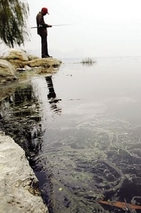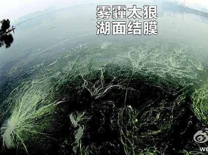 A Weibo user in Wuhan city shared photos of the pollution filming over the surface of lakes.