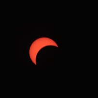 The moon crosses in front of the sun during a partial solar eclipse in Madrid, Spain, Sunday.