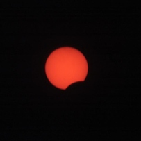 The moon crosses in front of the sun during a partial solar eclipse as seen from the Givatayim Observatory, near Tel Aviv, Israel.