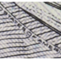Tilt the note back and forth while focusing on the blue ribbon, and you will see the bells change to 100s. To make fakes more difficult, the blue ribbon is woven into the bill — not printed on it. Also, the background color of the new $100 note is pale blue, but the color can be counterfeited so it won't be used to determine if the bill is real.