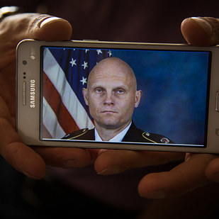A member of Kurdish Counter-Terrorism Unit who was in the operation room during the fight for Hawija shows a picture of Master Sgt. Joshua Wheeler on his smartphone screen. Wheeler was killed during that operation.