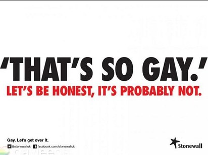 Stonewall has now launched a campaign called No Bystanders to encourage people who hear derogatory comments towards LGBT people to either challenge the person making them or offer support to the recipient. More than 16,000 people have so far signed up to the initiative, pledging to "be brave, be heard and be kind".