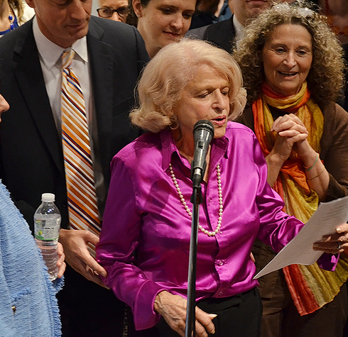 "Wow," said Windsor, 83, standing before at least 200 supporters packed into a small room on the west side of Manhattan's Lesbian, Gay, Bisexual & Transgender Community Center. So many people attended the Windsor press conference that a crew of supporters had to move two floors up in the same building to watch the event by live stream.