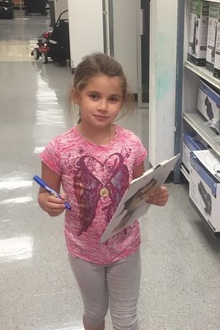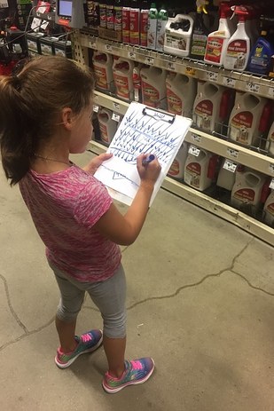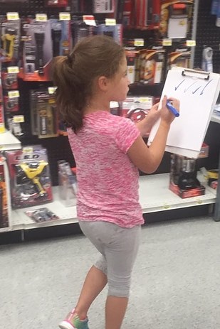 Last weekend, Tony took his daughter to run errands with him. For some reason, Bella asked him if she could bring a clipboard. He said yes, and this is what she did.