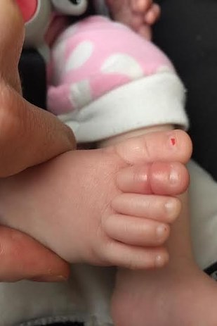 Walker's wife noticed Molly seemed to be overheating, so she took off the baby's socks. Then, she noticed something strange on her baby's toe.
