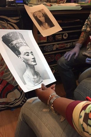When Taylor began to design the tattoo with the artist, he told her he needed a face to go off of for the design. Since Nefertiti was legendary for her beauty, Taylor decided to use her daughter's face.