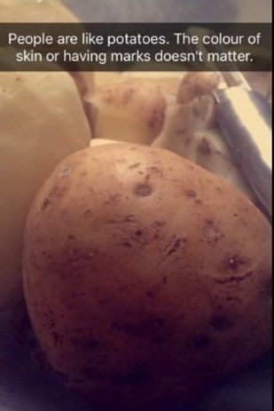 "People are like potatoes," she wrote. "The colour of skin or having marks doesn't matter. Because they are all the same once the skin is removed."
