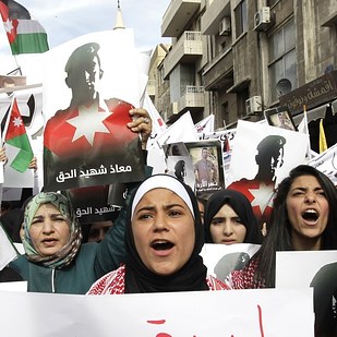 "We are all Muath ... We are all Jordan," they chanted, AFP reported.