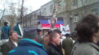 This video shows pro-Russian civilians forming a human shield around the building in Slavyansk.