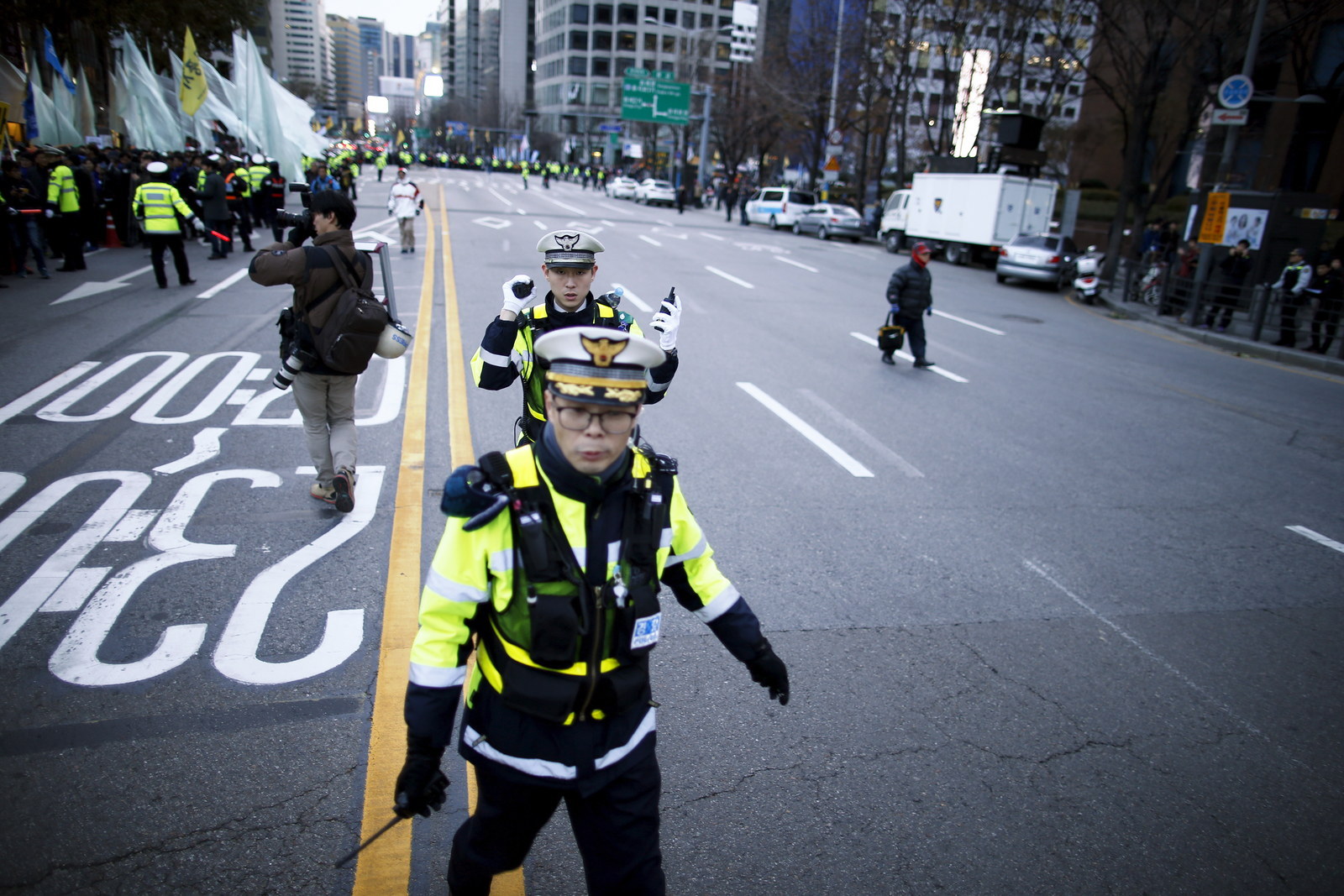 About 30,000 protesters, wearing masks in defiance of ban on mask-wearing during demonstrations, gathered in the city centre accusing President Park Geun-Hye of pushing pro-business labour laws and attacking personal freedoms, Al Jazeera reported.