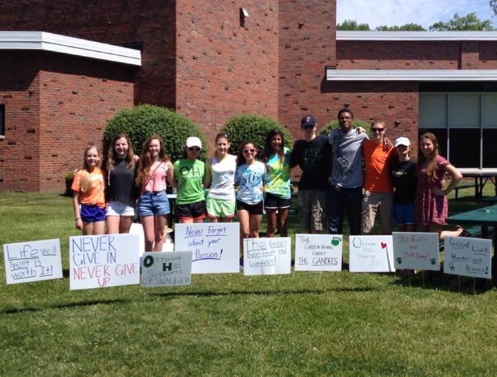 Hunter's school is supporting his effort, and let him stage a pre-walk pep rally in the school gym.
