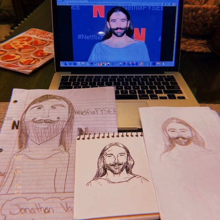 “We don’t typically do [family art night], but since we’re in the quarantine, we figured it’s finally time to just connect and come together as a family and just bond a little bit more. We are huge TV and pop culture fans and we love Queer Eye, and we chose our idol, Jonathan, because we love him. We’re thinking of doing family art nights once a week and inviting my dad and our brother next time!" —Valerie, Melanie's sister