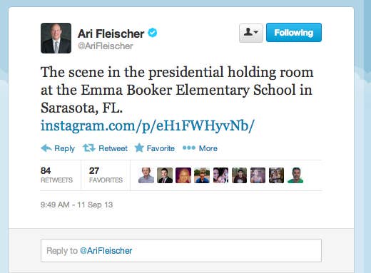 Former Bush spokesman Ari Fleischer tweeted his personal tale from September 11th. He was an aide to President Bush at the time.
