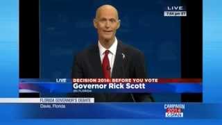 At the Florida gubernatorial debate last night, Republican Gov. Rick Scott refused to go stage for seven minutes because his opponent, former Gov. Charlie Crist, had an electric fan under his podium to keep him cool, which was against the debate rules.