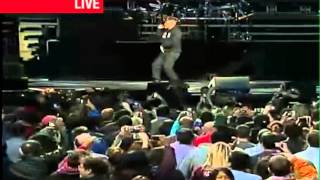 The rapper performed before President Obama in Columbus, Ohio, Monday.