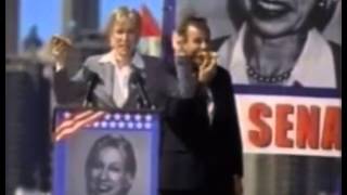"How do I know so much about New York pizza?" says the Clinton impersonator with the Southern accident talking about Pizza Hut's big New York pizza. "'Cause New York, I want to be your next senator!"