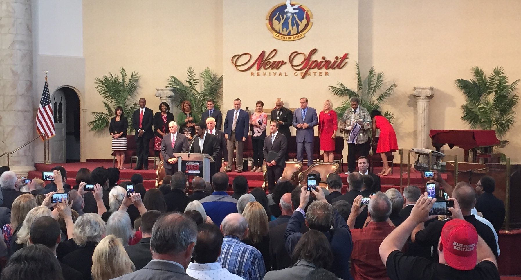 Frank Amedia is a Canfield, Ohio-based pastor who acts as a liaison for Christian policy for Trump, arranging meetings for Trump with evangelicals. Amedia sent out multiple invites through his mailing list for the event at a Ohio church and can be seen on stage in photos. He led a prayer with Trump at the end of the event.