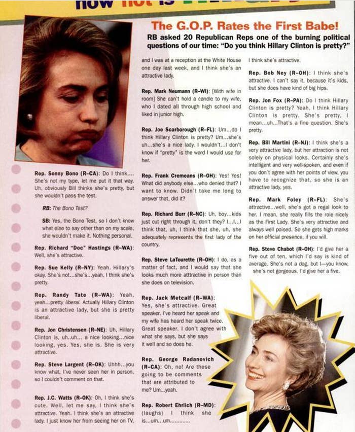 Among the questions they asked the new members was to rank then-First Lady Hillary Clinton on her attractiveness: