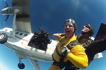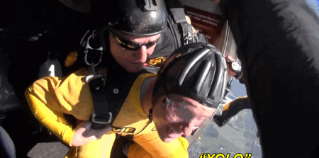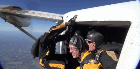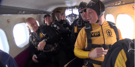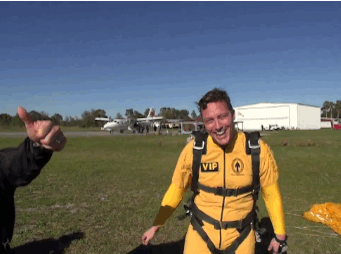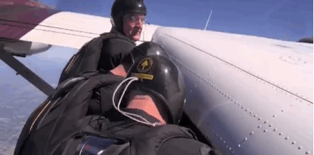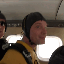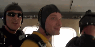 Then they make you watch this safety movie narrated by an insane man who apparently invented skydiving.