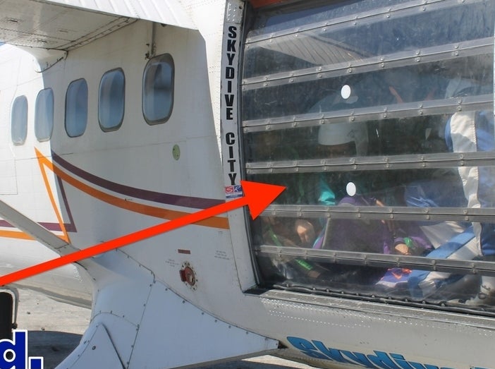 16. Right about when the plane reaches an altitude that reminds you of a commercial airline flight, the plastic door swings open.