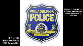 Philadelphia police released the 20-second 911 call Tuesday, as well as audio clips of officers discussing the incident. In that audio compilation, a woman called police at 4:37 p.m. on April 12, and calmly told the operator, "Hi, I have two gentlemen in my cafe who are refusing to make a purchase or leave," giving the address of the Starbucks.