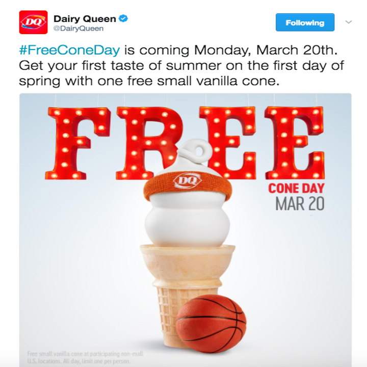 Dairy Queen is also handing out free cones to congratulate you on making it through another dark, sad hibernating period. It will also be collecting donations for Children's Miracle Network Hospitals.