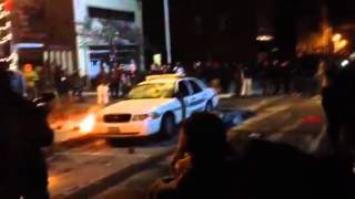 Protesters at city hall smash cop car