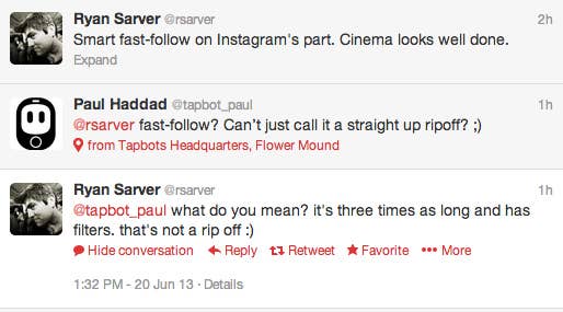 Compliments, but with a few thinly veiled shots thrown in. Here's Twitter's outgoing director of product, Ryan Sarver: