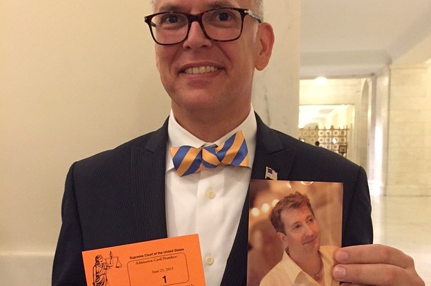 Starting this past week, Obergefell has been first in line at the court to hear the decision in the case. "This is my fourth day," he told BuzzFeed News on Thursday morning, bespectacled and wearing a blue-and-yellow bow time.